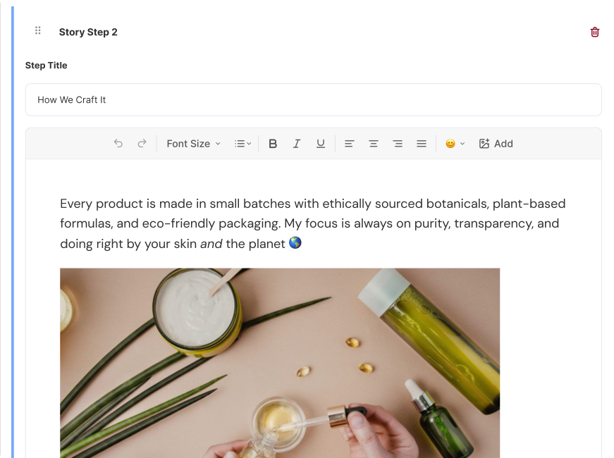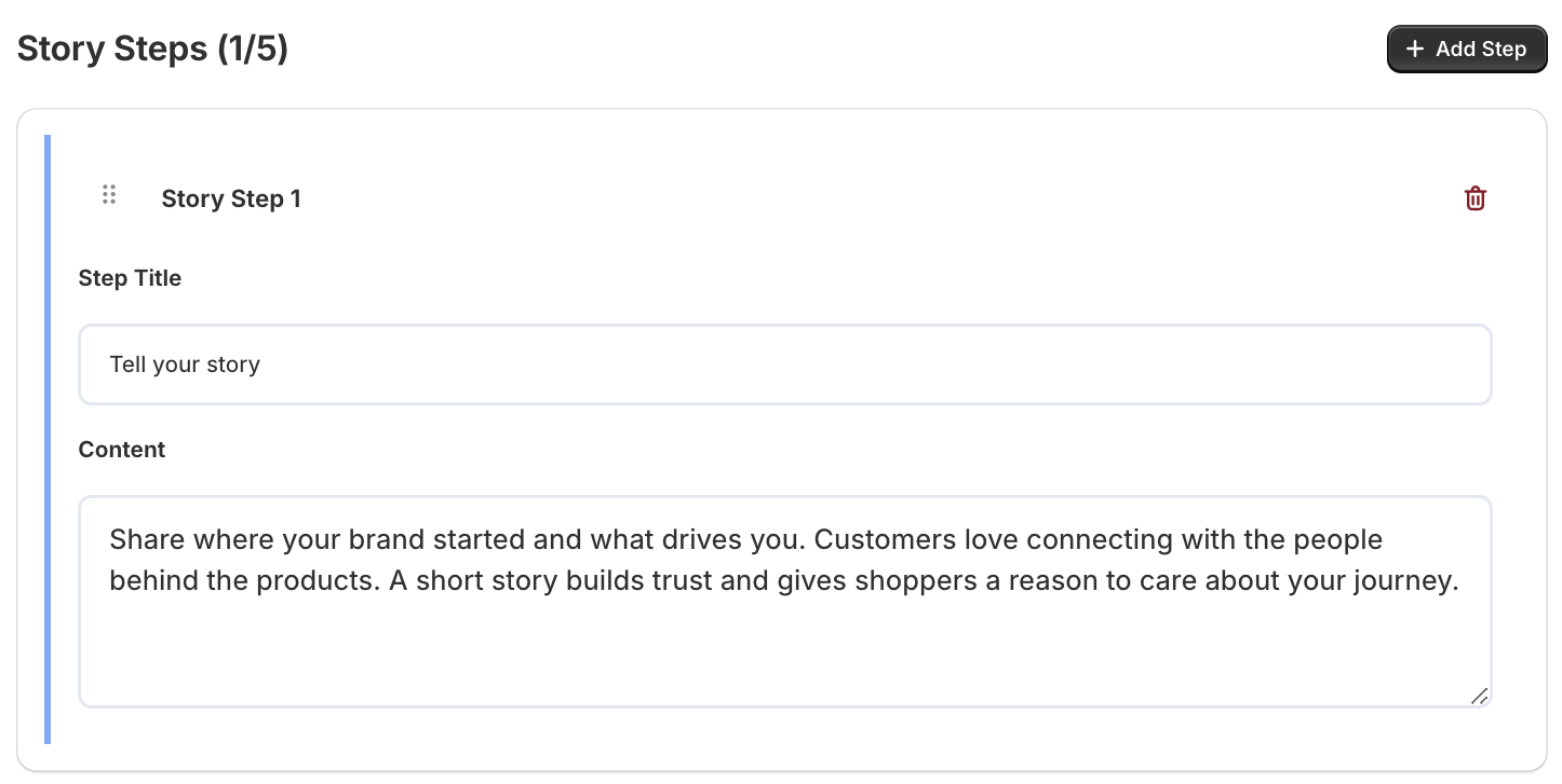 After enabling the Brand Story Popup, you can begin crafting your story.