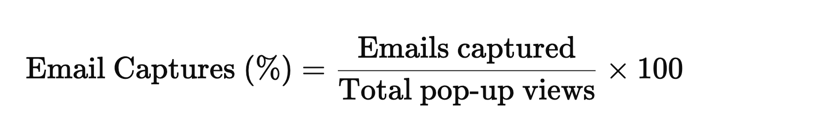 - Email Captures — This metric shows the percentage of visitors who submitted their email through your Brand Story Popup. It’s calculated as: